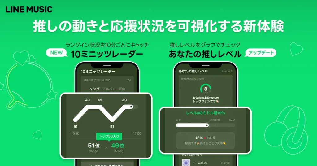 音楽ストリーミングサービス「LINE MUSIC」が、2025年6月に提供を開始した「My推し」。LINE MUSICアプリ上に自分だけのアーティストの専用スペースを設定できる機能である「My推し」に、新たな機能「10ミニッツレーダー」が追加された。